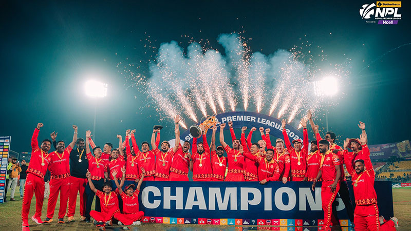 एनपिएलको दोस्रो संस्करणको फाइनलमा लुम्बिनी लायन्सले सुदू्रपश्चिम रोयल्सलाई छ विकेटले पराजित गरेको थियो । लुम्बिनीले त्यससअघि दोस्रो क्वालिफायरमा विराटनगर किङ्स र प्लेअफको एलिमिनेटरमा काठमाडौँ गोर्खाजलाई पराजित गरेको थियो