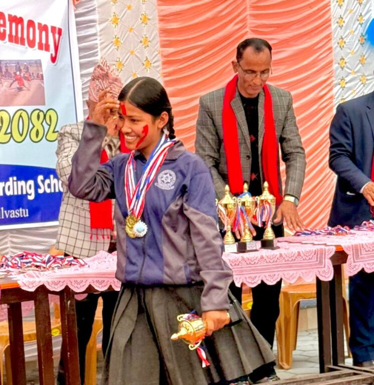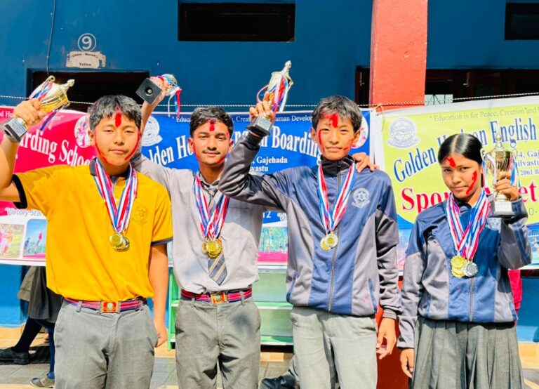 गोल्डेन राइजन अंग्रेजी आवासीय माध्यमिक विद्यालय वाणगंगा ४ गजेहडा कपिलवस्तुका विद्यार्थीहरू सम्मानित भएका छन्। विद्यालयले यही माघ १२ गतेदेखि १६ गतेसम्म विद्यालयमा सञ्चालन गरेको खेलकुद सप्ताह अन्तर्गत विभिन्न स्पर्धामा उत्कृष्ट नतिजा प्राप्त गर्ने खेलाडीहरु सम्मानित भएका हुन्।