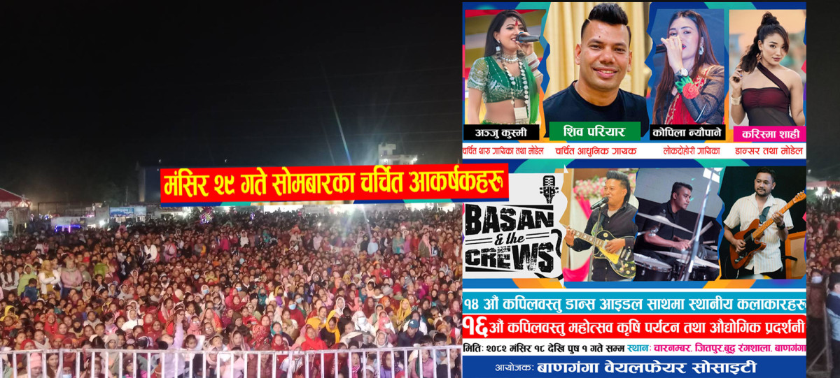 मंसिर १८ गतेदेखि जारी १६ औं कपिलवस्तु महोत्सव कृषि पर्यटन तथा औद्योगिक प्रदर्शनी स्थल चारनम्बर जितपुर स्थित बुद्ध रंगशाला आइतबार साँझ दर्शकको भीडले गुन्जियो । महोत्सवमा बढ्दै गएको दर्शकको उत्साहले हामीलाई अझ जिम्मेवार बनाएको महोत्सवका निर्देशक बुद्धि बहादुर रोकाहा (दिनेश)ले बताए । बुद्ध रंगशालामा महोत्सव अवलोकन गर्न आएका दर्शकहरुको भीडबाट व्यवसायीहरु उत्साहित भएका थिए ।…
